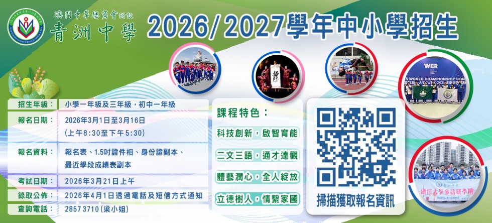 為了激發同學們的閱讀興趣,培養終身閱讀的好習慣,澳門中華總商會附設青洲中學特別推出了“圖書閱讀龍虎榜獎勵計畫”和“閱讀心得獎勵計畫”!我們希望通過制度化的獎勵和多元的活動設計,提升大家的閱讀動機,讓書...