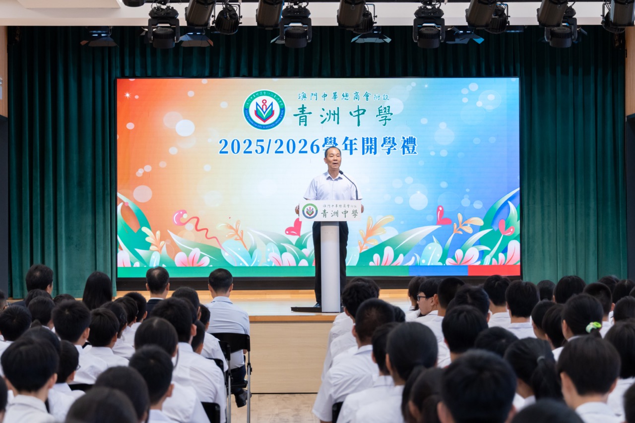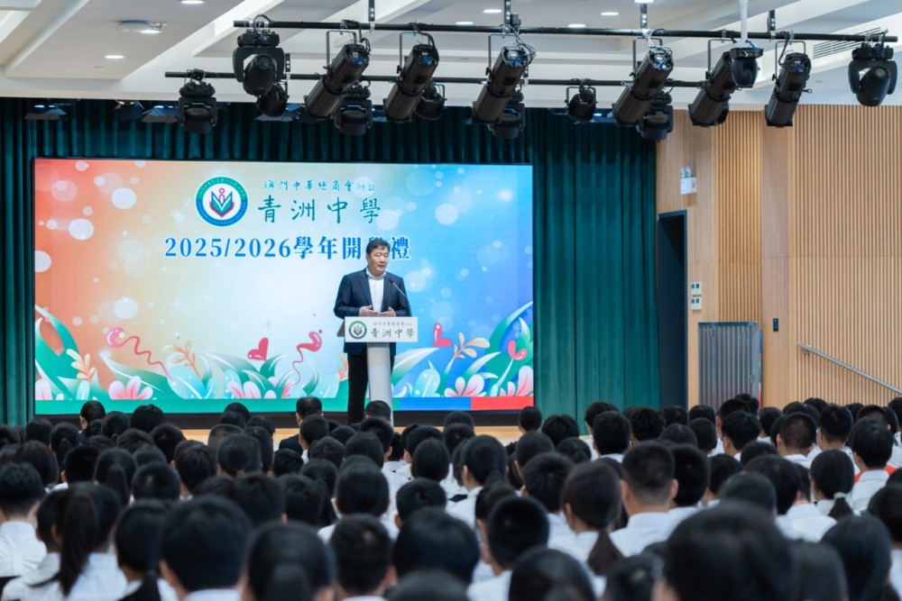 八時三十分,樂曲雄壯,國歌聲嘹亮,新學年開學典禮正式開啟。典禮上,張捷校長寄語全校同學:首先,新學年要有新氣象、新規劃,反思總結過去,和過去的缺點錯誤揮別,展望嶄新未來。學校始終以“愛國愛澳”為引領,聚焦校訓與中華優秀傳統文化,致力於培養兼具品德與學識、能為民族和國家貢獻的人才,助力每位同學擁有精彩的校園生活。