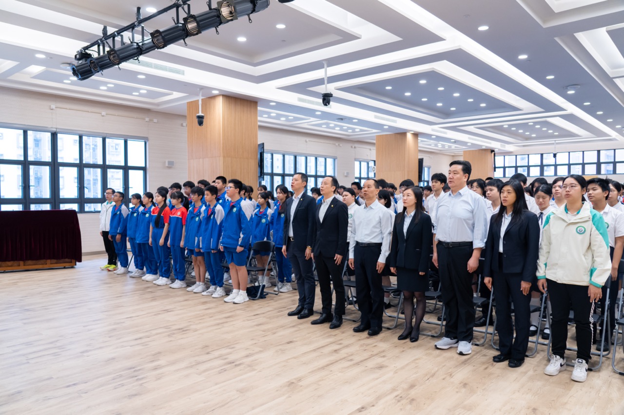 活動在全體師生激昂雄壯的國歌聲中正式拉開帷幕。初三甲班學生代表上台宣佈聯校運動會將於11月5日至7日舉行,號召同學積極參與、挑戰自我,發揚團結拼搏的體育精神,共同營造積極向上的校園運動風氣。
