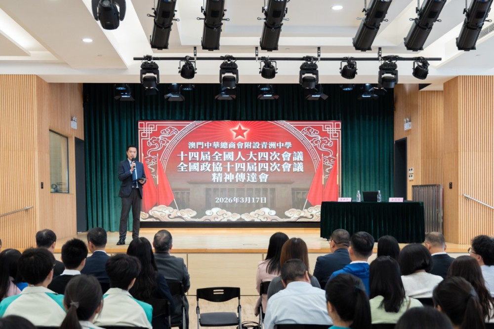 為深入學習全國兩會精神,澳門中華總商會附設青洲中學近日於校內舉辦“全國兩會精神傳達會”,邀請澳區全國人大代表崔世平、全國政協澳區委員黃潔貞擔任主講嘉賓,向兩校師生分享國家最新發展方向與政策重點。