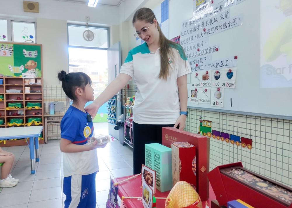 活動中,孩子們沉浸在「嫦娥奔月」的動人傳說裡,以純真語言生動演繹故事,並在英語學習中融入文化傳承,嘗試以英語講述中國經典;大家提著親手製作的小燈籠,一張張笑臉綻放著幸福光彩。更令人感動的是,孩子們帶來了各式月餅與應節水果與同學分享,在品嘗美味的過程中,體會分享的快樂與感恩的真諦。