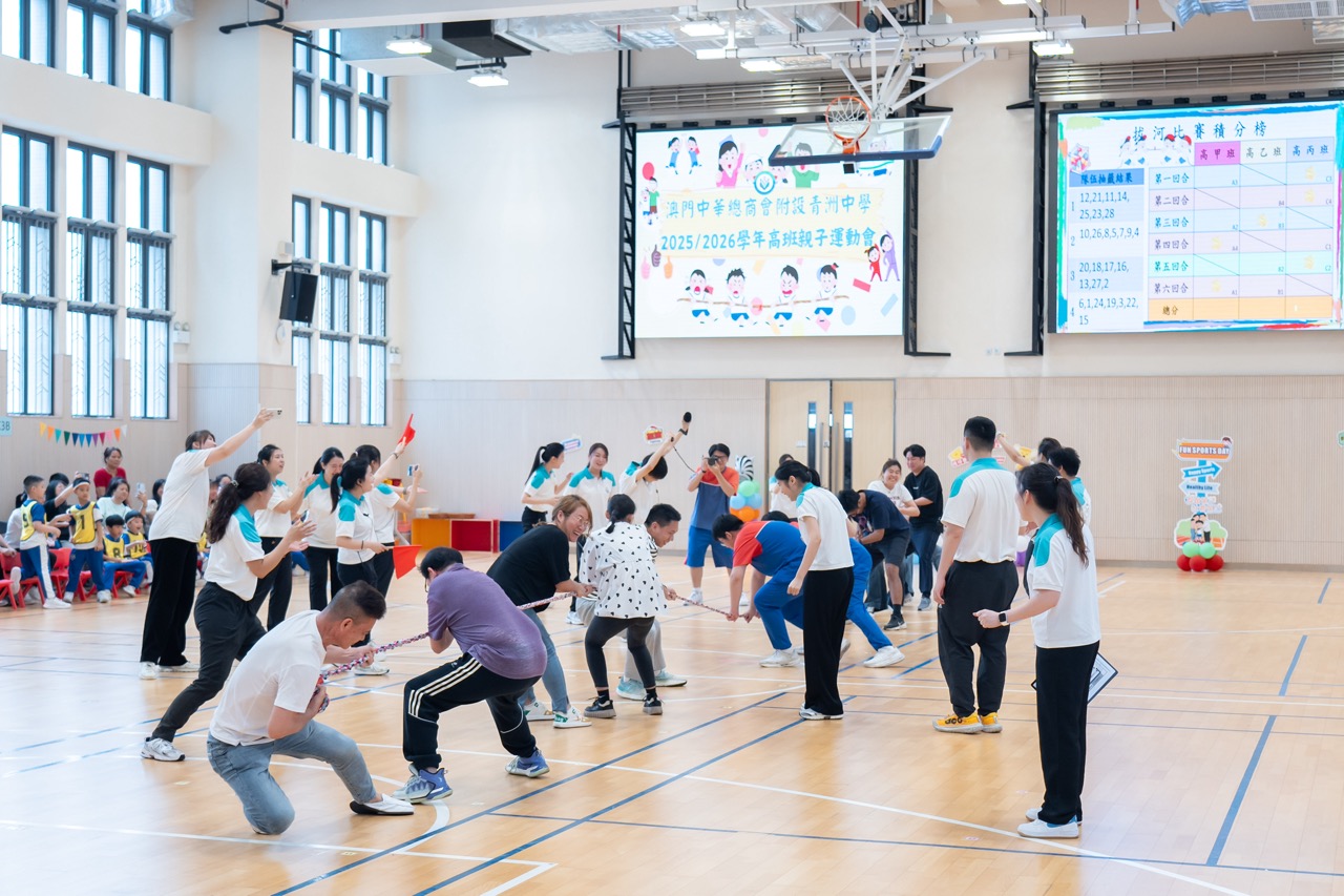 日前,本校幼高級舉辦「親子同運動,快樂共成長」親子運動會。小旗手整齊護旗進場,運動會在國歌聲中拉開序幕。幼兒代表莊嚴宣誓,傳遞「友誼第一、比賽第二」的精神,感動全場。幼兒隨後帶來籃球操,並帶領家長一起做親子熱身操,跟隨音樂跳躍搖擺。運動會設有「親子大力士」、「小球歷險記」、「拔河大賽」及家長拔河友誼賽,鍛鍊幼兒的協調性、靈敏性和平衡力,也考驗親子默契。現場歡聲笑語,溫馨熱鬧。