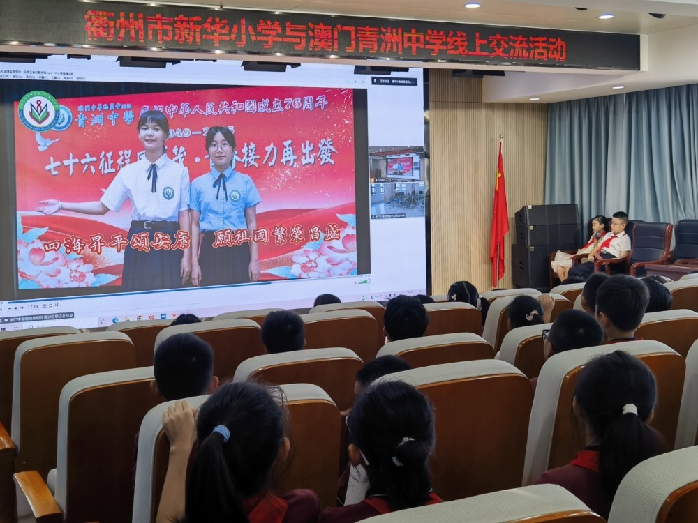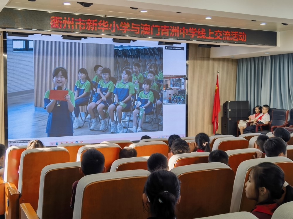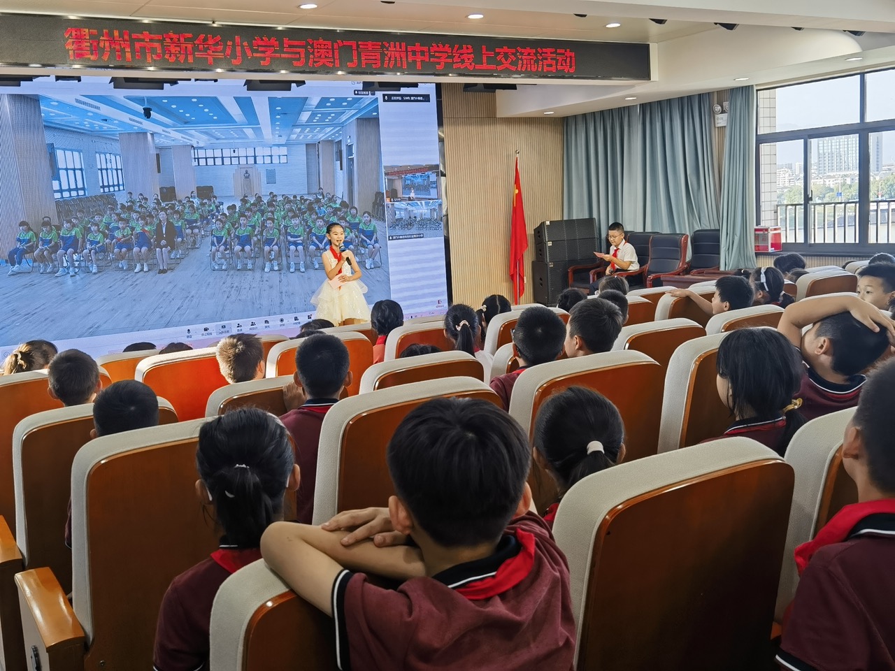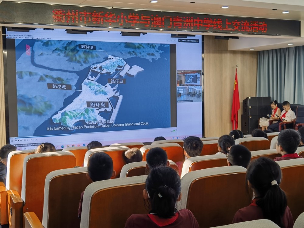 2025年10月15日下午,我校與浙江省衢州市新華小學四年級師生以「童心相連・禮贊時代」為主題,成功舉辦了一場別開生面的線上愛國交流活動。活動中,兩校學生化身「家鄉小導遊」,透過精心製作的視頻,生動展示家鄉的文化特色。新華小學同學介紹了衢州的古蹟、美食與非遺技藝;我校學生則分享了澳門的世界文化遺產、特色美食與非遺項目,展現兩地豐富的文化底蘊。