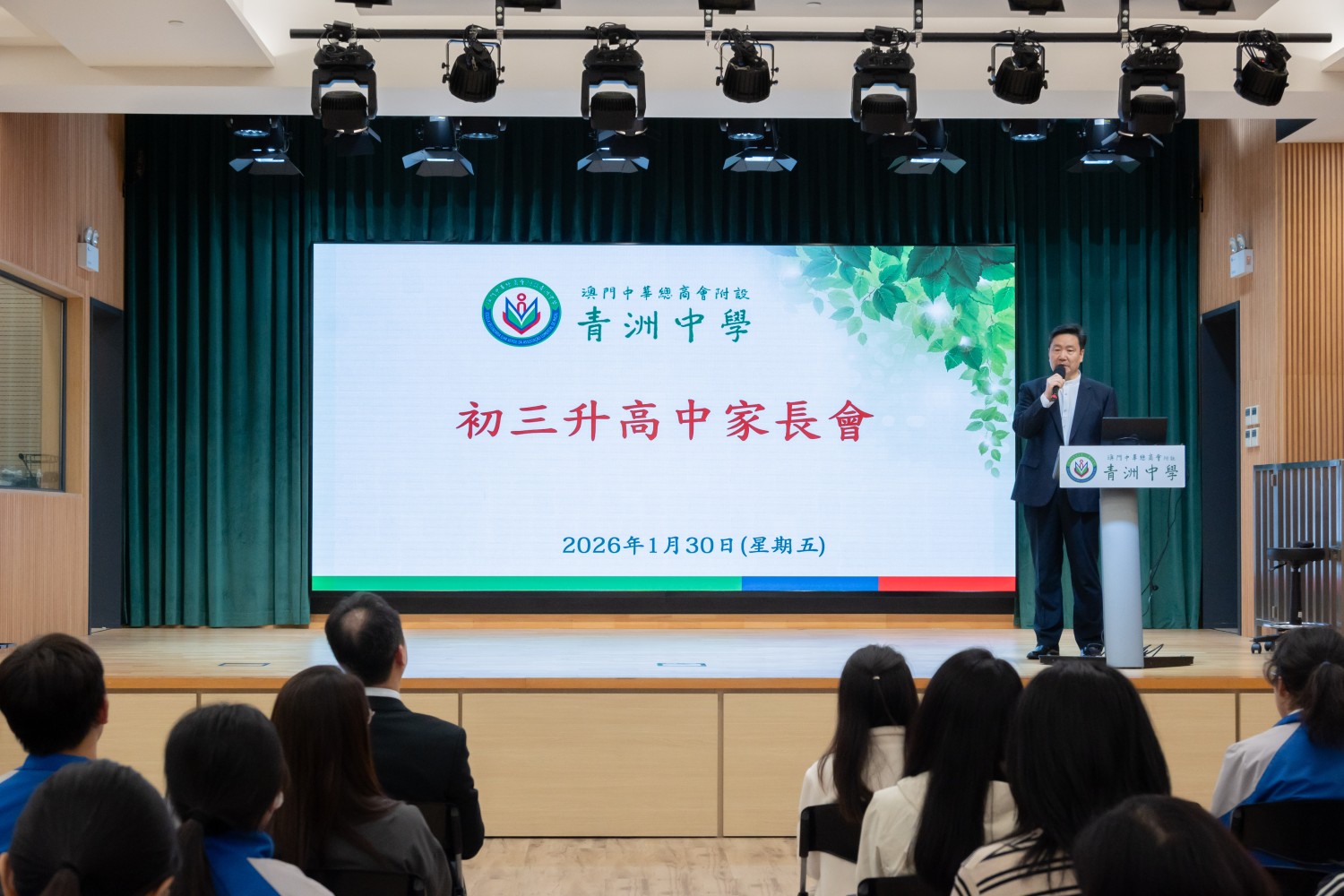 1月31日,澳門中華總商會附設青洲中學舉辦初三升高中專題講座,活動圓滿完成,為初三家長與學生帶來了一場內容充實的升學指導,助力學生明確方向、蓄力前行。