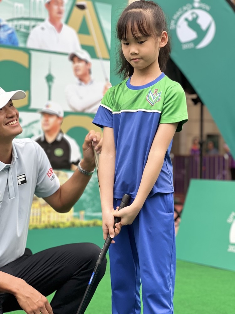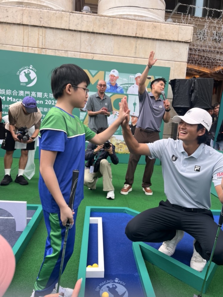 日前,我校小學部多名學生應邀參與「2025澳娛綜合澳門高爾夫球公開賽」社區高爾夫球同樂日。同學們與香港星級球手許龍一,及澳門本地球手史毅兩位運動員進行專業指導及互動,透過高球主題遊戲方式讓同學從中認識高球和體驗高球樂趣,拓展他們的運動視野,豐富課餘生活體驗。