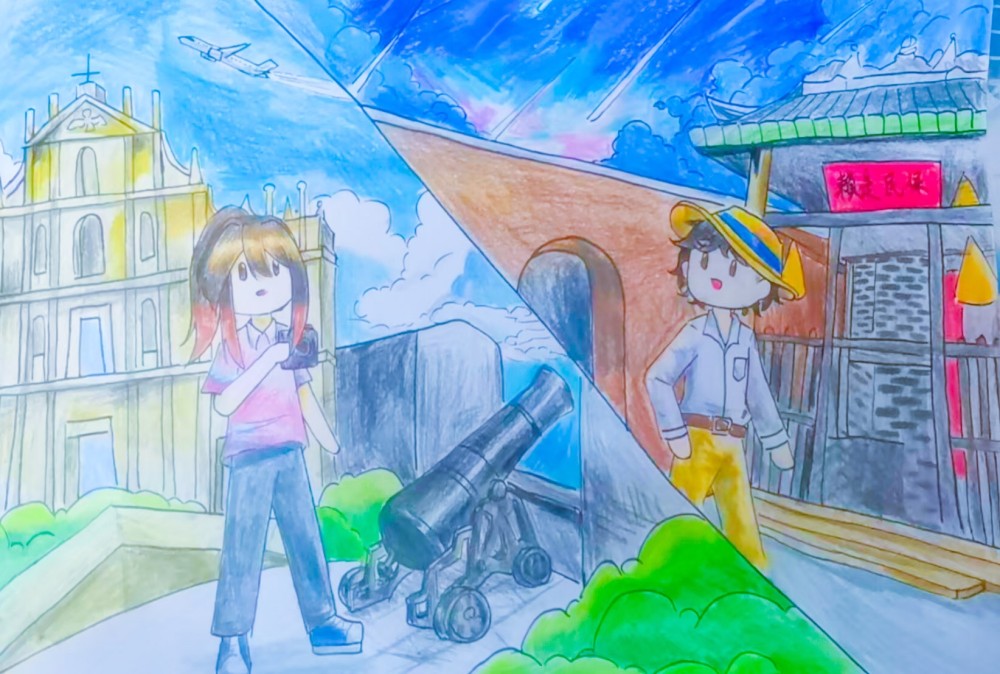 為慶祝澳門申遺成功二十週年,由澳門青年展藝協會主辦的「遺・繫澳門」繪畫比賽圓滿舉行。我校學生以獨特的創作視角與紮實的繪畫功底,在眾多參賽作品中脫穎而出。獲獎作品更於澳門科學館公開展出,展現我校美育教育的豐碩成果。獲獎名單如下:初中組三等獎:伍慧妤(初二丙)、蘇佩儀(初二丙)