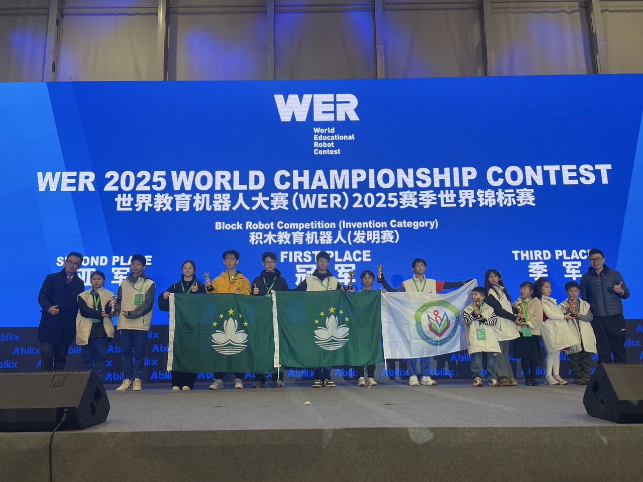 日前,我校組織三支隊伍前往上海參加「世界教育機器人(WER)2025賽季世界錦標賽」。同學表現卓越,於發明賽中勇奪中學組冠軍及亞軍。本次大賽由世界教育機器人學會主辦,世界教育機器人學會各國分會、上海市航空學會、上海宇航學會協辦,聚集來自中國、美國、英國、日本、韓國、新加坡等十多個國家的學生隊伍同場競技。