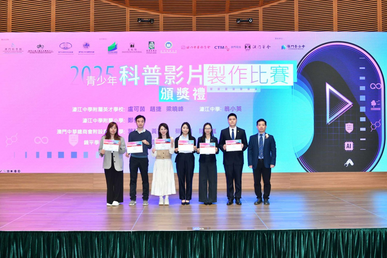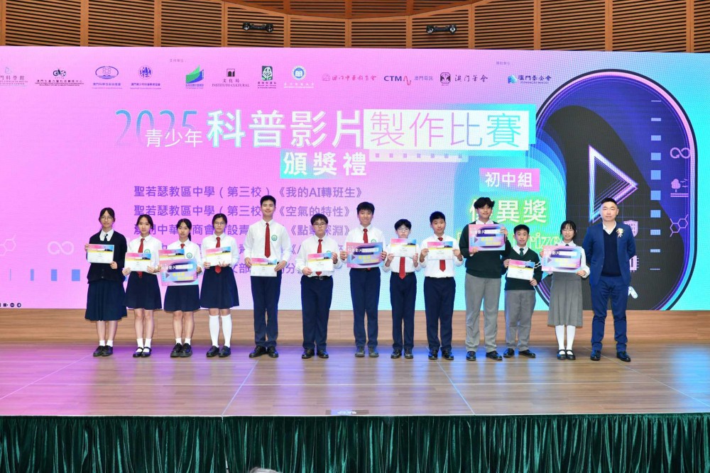 日前,由澳門科學館、澳門生產力暨科技轉移中心、澳門科學技術協進會及澳門青少年科普教育協會聯合主辦的「2025青少年科普影片製作比賽」圓滿結束。比賽旨在提升本澳青少年的科普素養,增進對科學新知的理解,並透過製作過程引導學生探索、學習、積累科普知識,從而了解科技發展現況與未來趨勢。我校學生積極參與,在超過二百五十份參賽作品中脫穎而出,榮獲多項佳績。