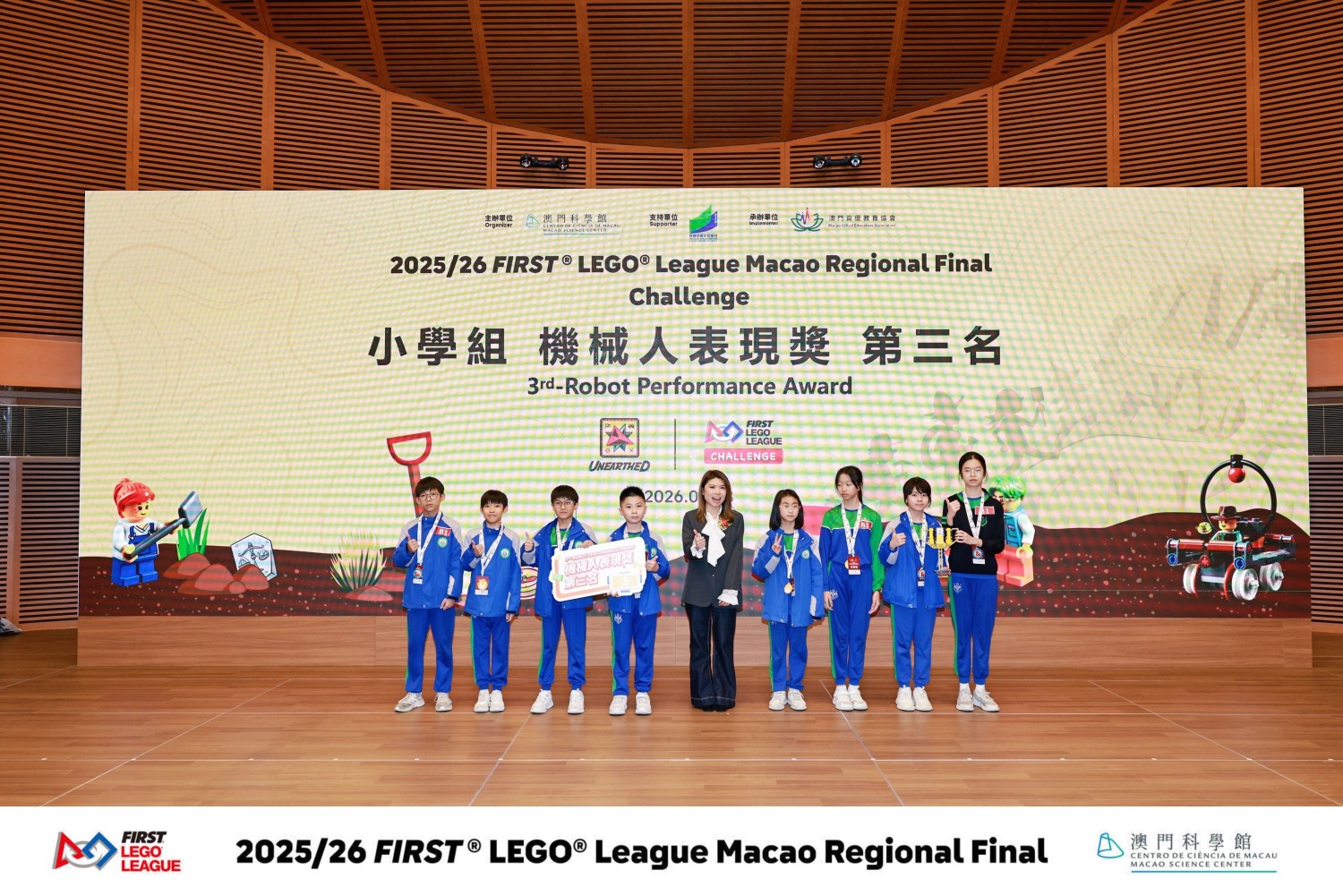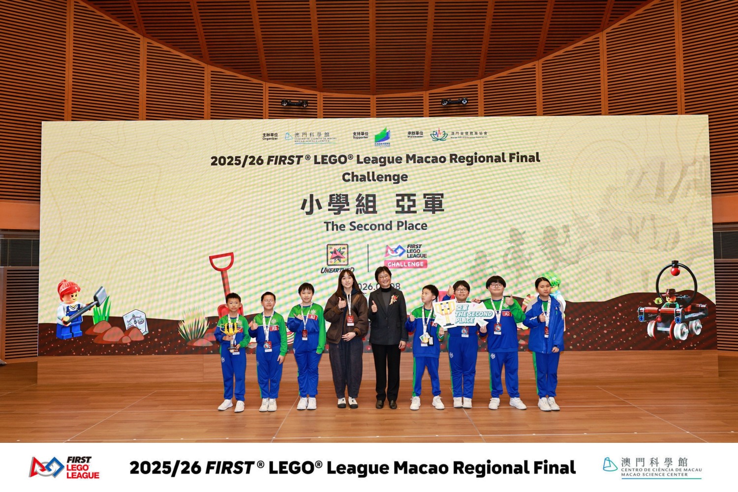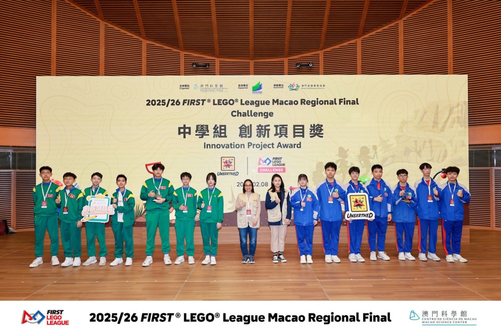 2026年2月8日,我校中小學同學參加了由澳門科學館主辦、澳門資優教育協會與澳門科技創新教育學會承辦、教育及青年發展局支持的2025/2026 FIRST® LEGO® League(FLL)澳門區總決賽CHALLENGE賽項。FLL競賽由丹麥樂高®集團與美國FIRST基金會於1998年創辦,現已成為覆蓋全球110多個國家和地區、近100萬學生參與的頂尖青少年科技賽事。本次澳門區總決賽不僅為學生搭建了展示創新思維、編程實作與團隊協作的舞台,更推動了本地STEM教育與國際接軌,為澳門培育未來科創人才注入動力。參賽隊伍需通過現場演示與答辯,向評審闡釋創新理念,並運用指定積木搭建模型、結合編程完成指定任務。經過激烈角逐,我校學子表現出色,小學組勇奪全場亞軍及機械人表現獎第三名,中學組則榮獲創新項目獎與優異獎。