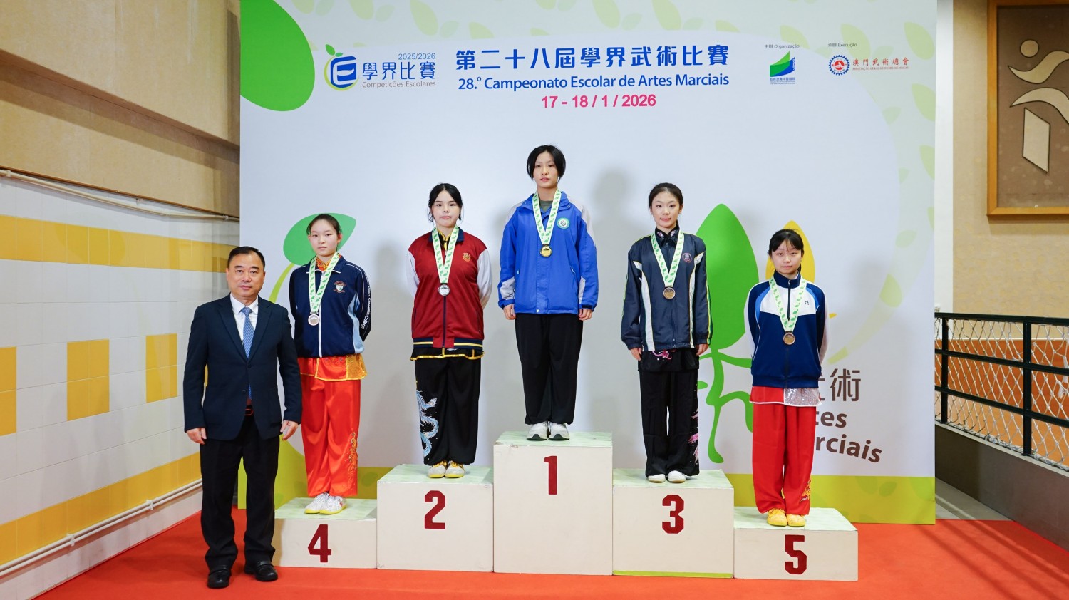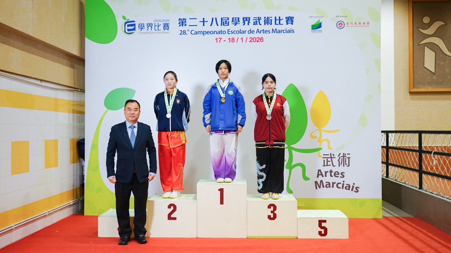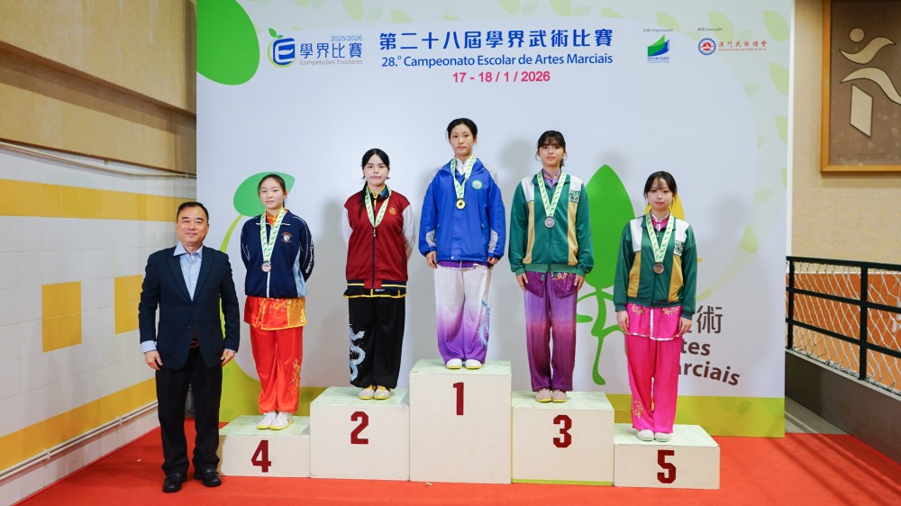 日前,由澳門教育及青年發展局主辦、澳門武術總會承辦的「第二十八屆學界武術比賽」圓滿結束。我校學生在六百七十人參賽中脫穎而出,榮獲多項佳績。獲獎名單如下:劉靖琳(高一乙)女子A組 長拳類傳統拳術 第一名女子A組 長拳類傳統短器 第一名女子A組 長拳類傳統長器 第一名